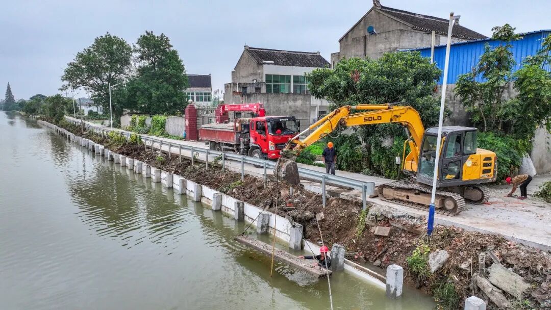 这两天,上六圩港东兴段也正历经生态蜕变。这段长6.95公里的河道,经常年河水冲刷,部分河坡坍塌严重,对沿岸行人车辆的安全产生威胁。东兴镇结合“生态河道+防汛安全”共建模式,对河道进行河坡驳砌及岸坡绿化建设,该工程预计于11月底完工。完工后,上六圩港两侧道路的行车安全将大大提升,这条镇域“大动脉”也将环境更优美、防汛更安全、水生态更丰富。