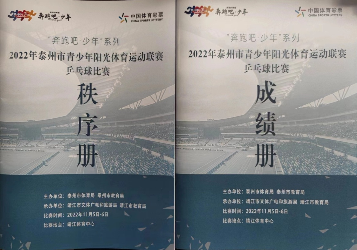 承办2022年泰州市青少年阳光体育运动联赛乒乓球比赛及秩序册、成绩册