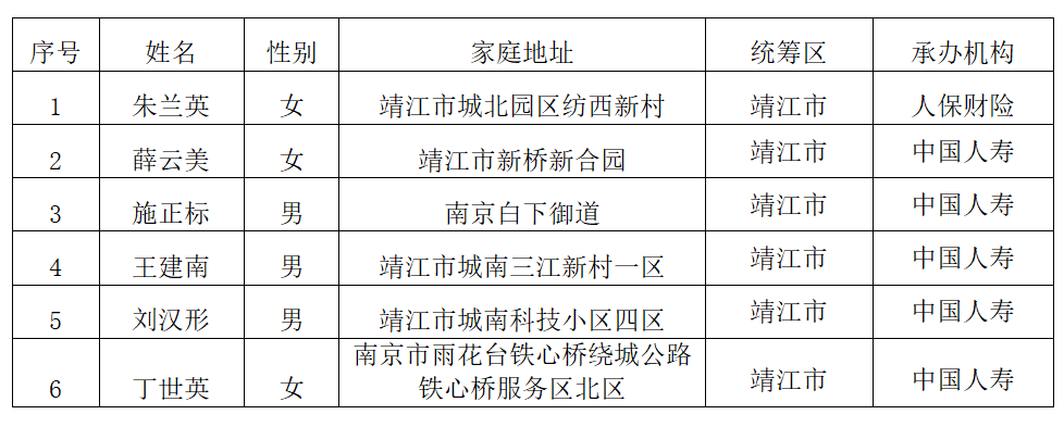 承办机构:中国人寿保险股份有限公司靖江支公司