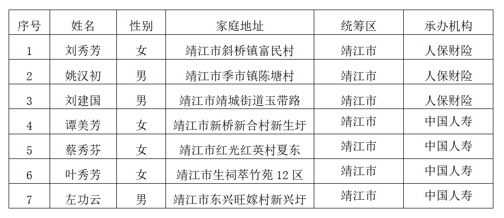 承办机构:中国人寿保险股份有限公司靖江支公司