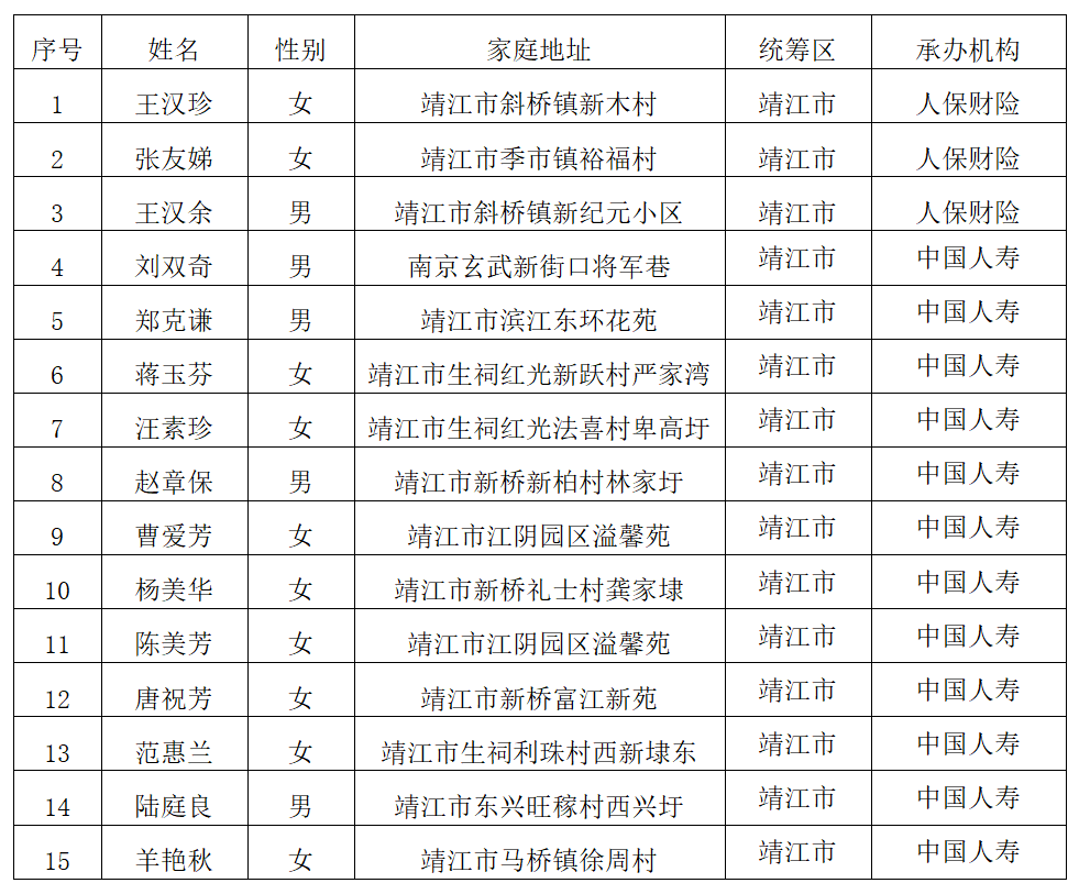 附件:《靖江市长期护理保险重度失能人员公示名单》