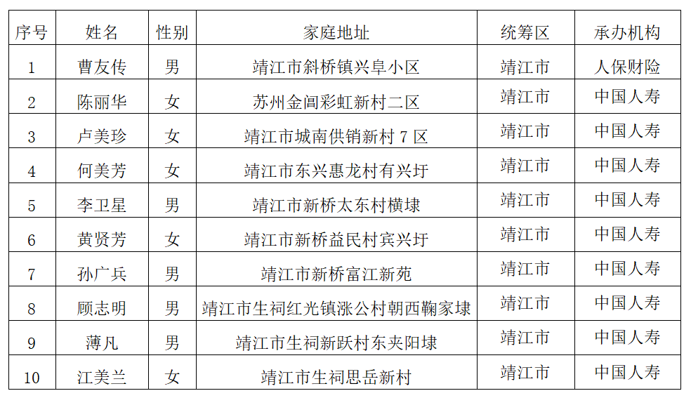 承办机构:中国人寿保险股份有限公司靖江支公司