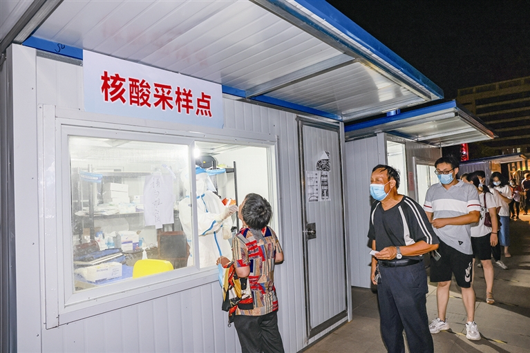 图为城南办事处正在对重点人群开展核酸检测。盛义摄