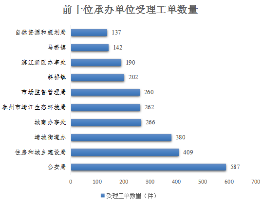 本月工单受理涉及88个承办单位中的64个,工单数量前十单位为: