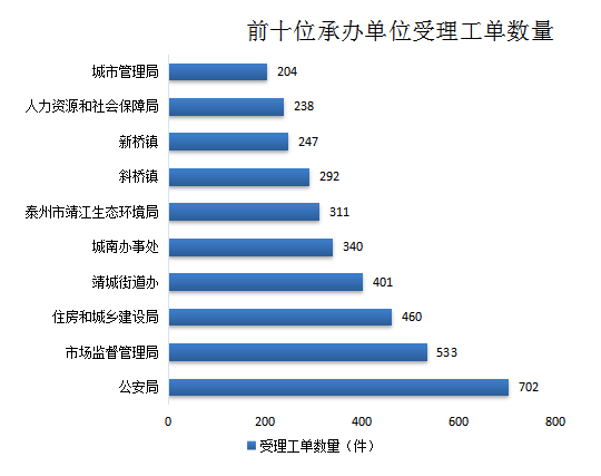 本月工单受理涉及87个承办单位中的68个,工单数量前十单位为: