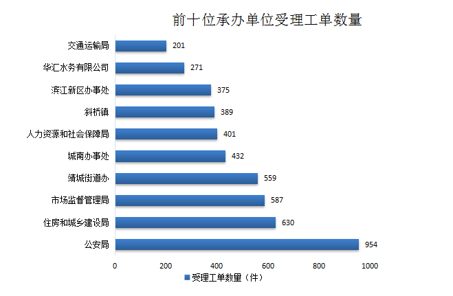 本月,工单受理涉及89个承办单位中的72个,工单数量前十的单位为: