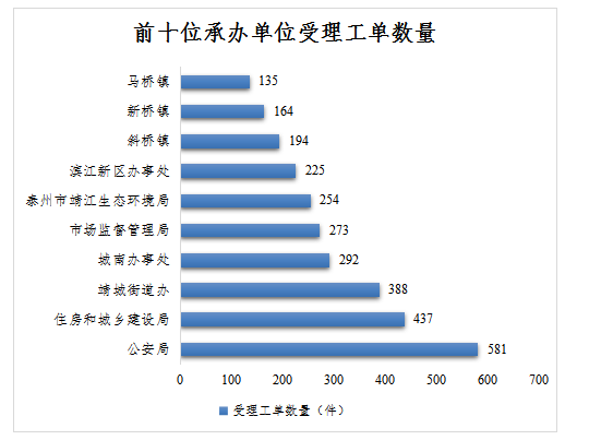 本月工单受理涉及88个承办单位中的67个,工单数量前十单位为: