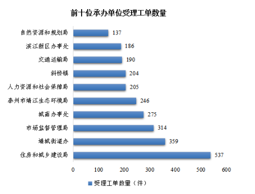 本月工单受理涉及87个承办单位中的65个,工单数量前十单位为:
