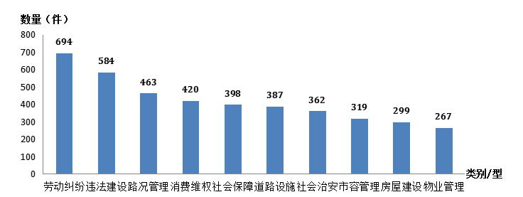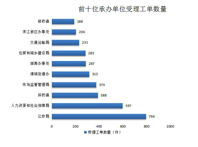 本月,工单受理涉及89个承办单位中的76个,工单数量前十的单位为: