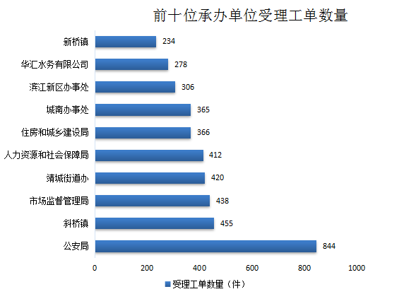 本月,工单受理涉及89个承办单位中的68个,工单数量前十的单位为: