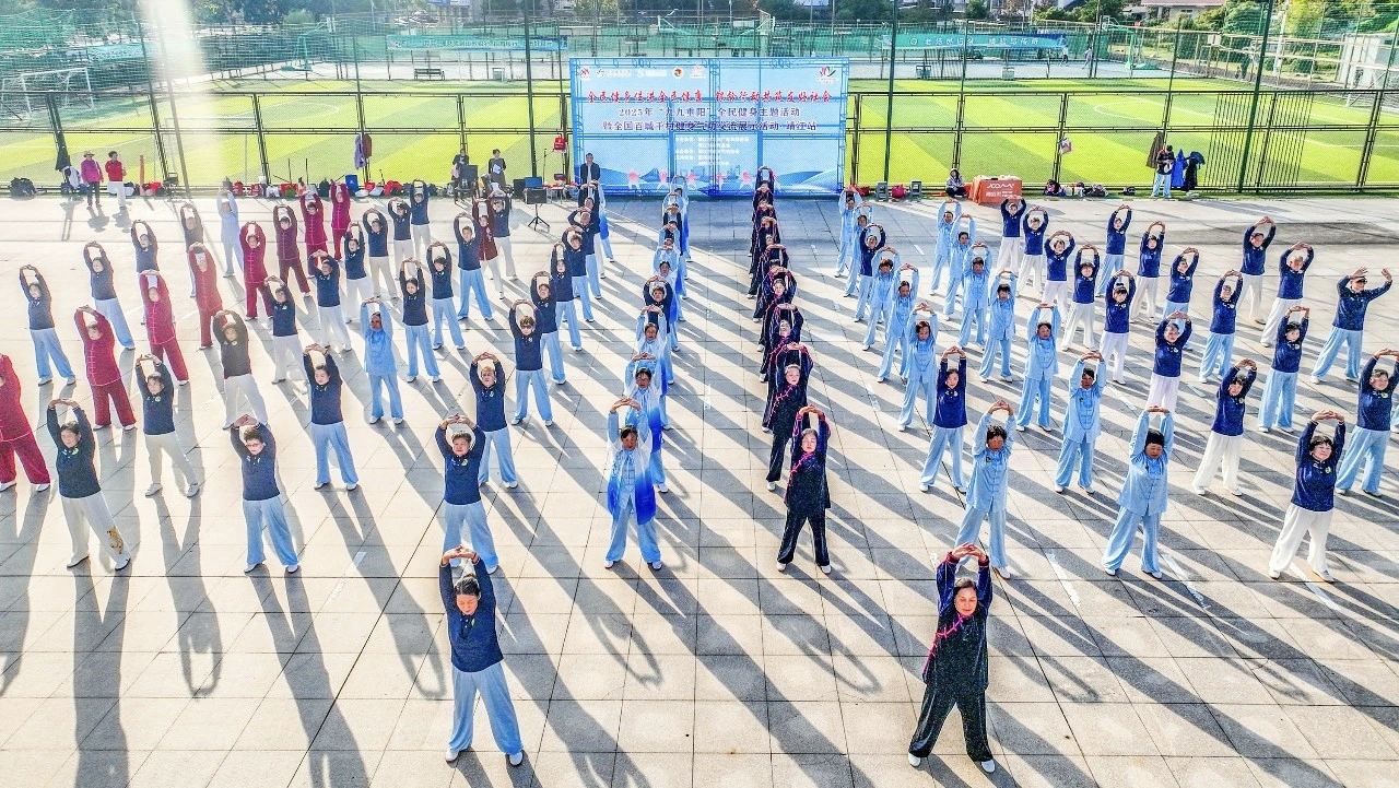 2025年10月29日下午,由靖江市文体广电和旅游局主办的“九九重阳”全民健身暨2025年度全国百城千村健身气功交流展示活动(靖江站)在靖江市民健身广场举行,活动以“全民健身促进全民健康 银龄行动共筑友好社会”为主题,吸引了120余名健身气功爱好者参与。