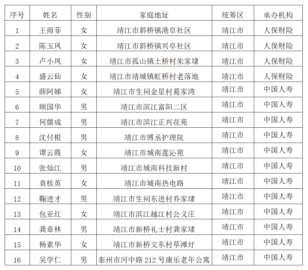 附件:《靖江市长期护理保险重度失能人员公示名单》