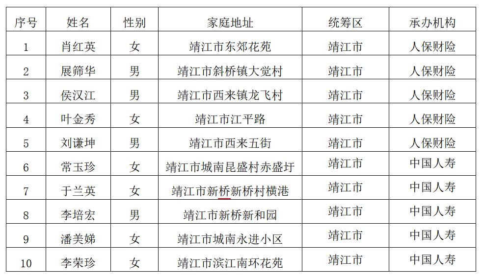 承办机构:中国人寿保险股份有限公司靖江支公司