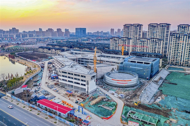我市加快渡江实验小学项目施工,该项目总投资2.38亿元,位于望江路以南、渡江路以北、文兴路以西、城东大道以东,总建筑面积36000多平方米,目前项目已完成封顶,预计2022年秋学期之前建成交付,建成后将新增学位2000多个,更好满足附近学生就近入学的需求。图为已封顶的渡江实验小学。盛义摄