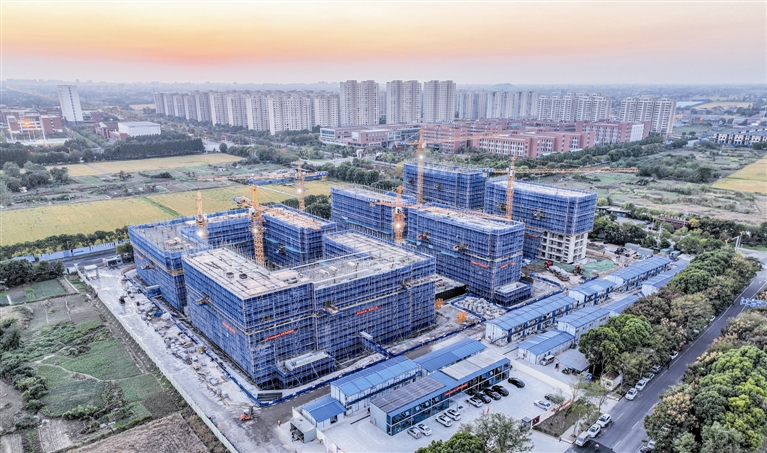 技术技能人才社区“馨蓝家园”项目是我市首个专门为专业技术、技能人才打造的安居社区。项目位于开发区核心地块,占地面积约4万平方米,总投资约3.26亿元,规划建设866套公寓住房及绿化、道路、车库等配套设施,可同时满足3000名技术技能人才的安居需求。该项目于今年3月正式动工,预计2026年3月竣工交付。图为施工现场。盛义摄。
