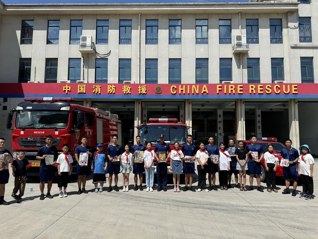烈日炎炎,却抵挡不住青少年求知探索的热情,孩子们在消防队员的指导下,走进近防装备,学习灭火器的正确使用方法。活动最后,孩子们为消防员送上亲手画的画,大家通过合影“定格”下最美好的瞬间。