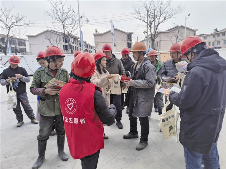 孤山司法所还组织普法志愿者送法进工地,为农民工送上农民工权利保护口袋书,解答现场农民工咨询,为农民工畅通法律诉求通道。
