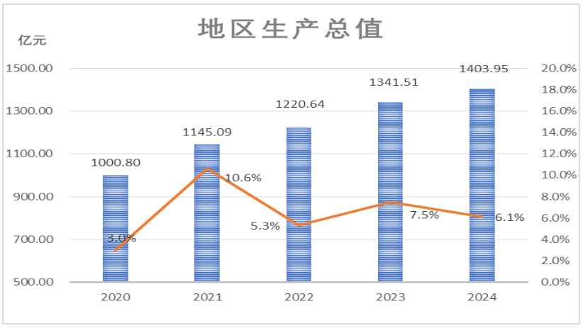经济发展稳中向好。初步核算,全年实现地区生产总值1403.95亿元,增长6.1%。其中,第一产业增加值28.20亿元,增长4.0%;第二产业增加值789.92亿元,增长5.4%;第三产业增加值585.83亿元,增长7.1%。全年三次产业结构比例为2.0:56.3:41.7。人均GDP为212510元,比上年增长6.3%。全年新增私营企业和个体工商户9760户,其中新注册私营企业2650户,个体工商户7110户。