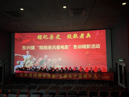 为扎实做好节日期间拥军优属、拥政爱民工作,进一步弘扬爱国拥军传统,营造关心关爱退役军人的良好社会氛围,2月8日下午,东兴镇宣传科、退役军人服务站共同举办了“我陪老兵看电影”专场观影活动,邀请辖区内50名退役军人、优抚对象代表观看电影《长津湖之水门桥》。
